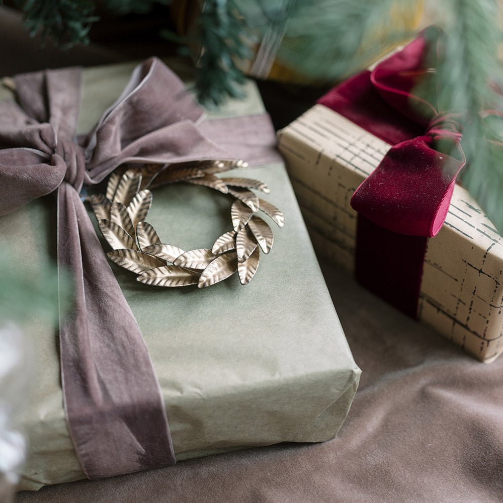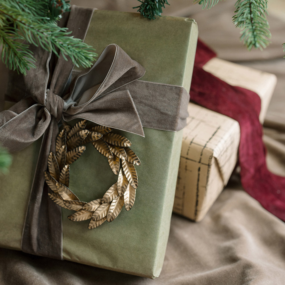 5" Iron Wreath Ornament, Brass