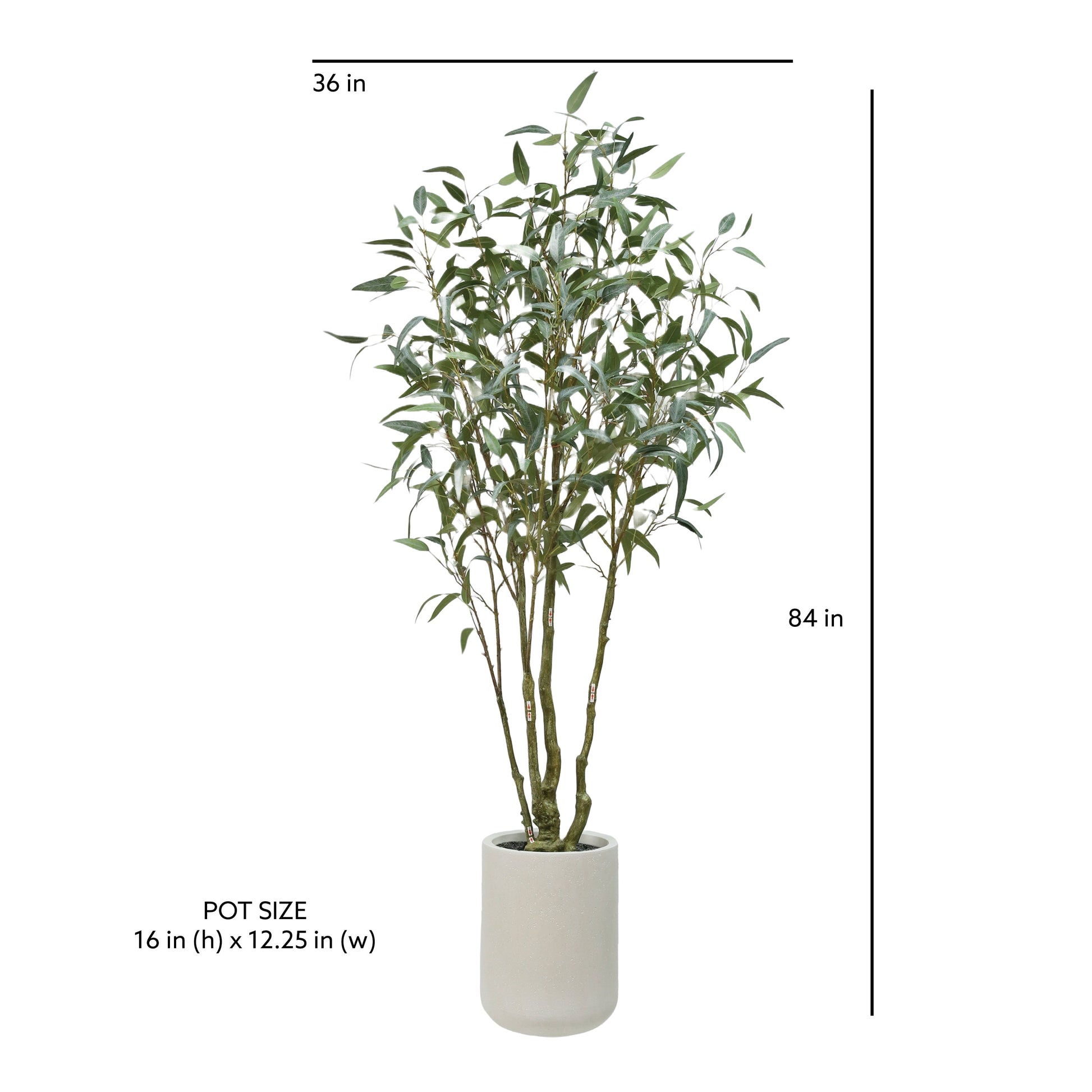 Complementing the tree's allure is the Artisan Planter, a work of art. Handcrafted with meticulous attention to detail, the planter evokes a sense of timeless beauty that harmonizes effortlessly with the eucalyptus tree. Its artisanal charm and carefully chosen materials make it a stunning foundation for your botanical masterpiece.