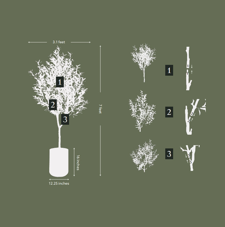 The 7-foot stature of the Artificial Olive Tree commands attention and adds a vertical dimension to your decor. Whether nestled in a corner or proudly displayed in an open space, its presence radiates elegance and sophistication. The Artisan Mediterranean Pot enhances this effect, elevating the overall visual appeal.