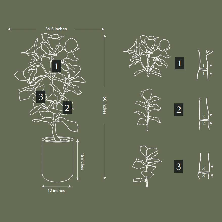 Carefully assembled to mimic the real thing, our 5' faux Fiddle Leaf Fig Tree boasts a multi-branched design that closely resembles the intricacies of its living counterpart. Every detail from the leaves to the trunk is expertly handcrafted to create a realistic effect that will leave your guests in awe.