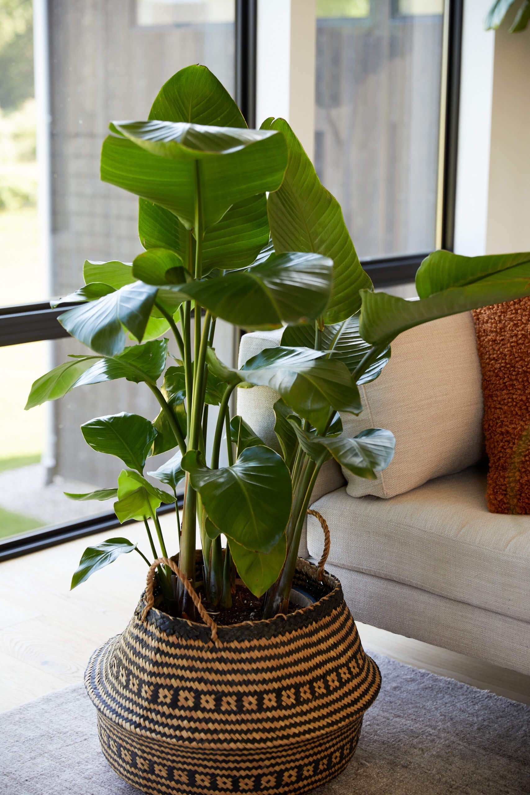 Impressive and tropical with large, glossy leaves that naturally split over time.