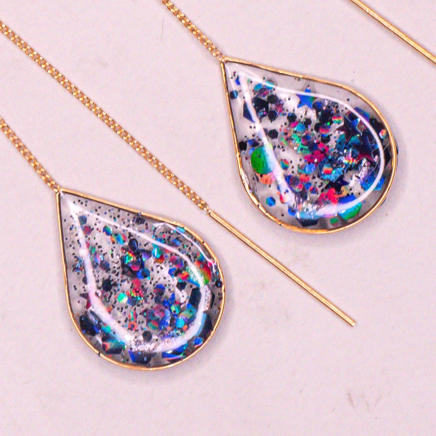 • Resin mixed with varied sizes of deep navy blue holographic glitter for a festive, sparkling finish