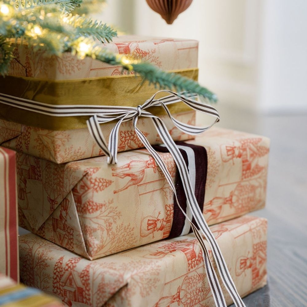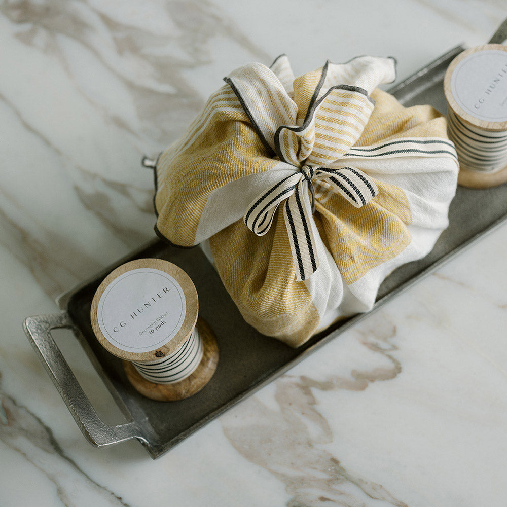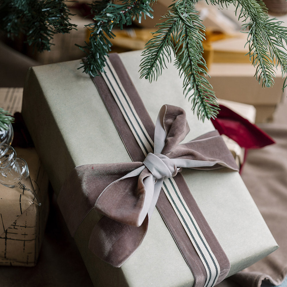 Our grosgrain ribbon is perfect for holiday gift wrapping and decor. Classic black and cream velvet ribbon in widths for every occasion.