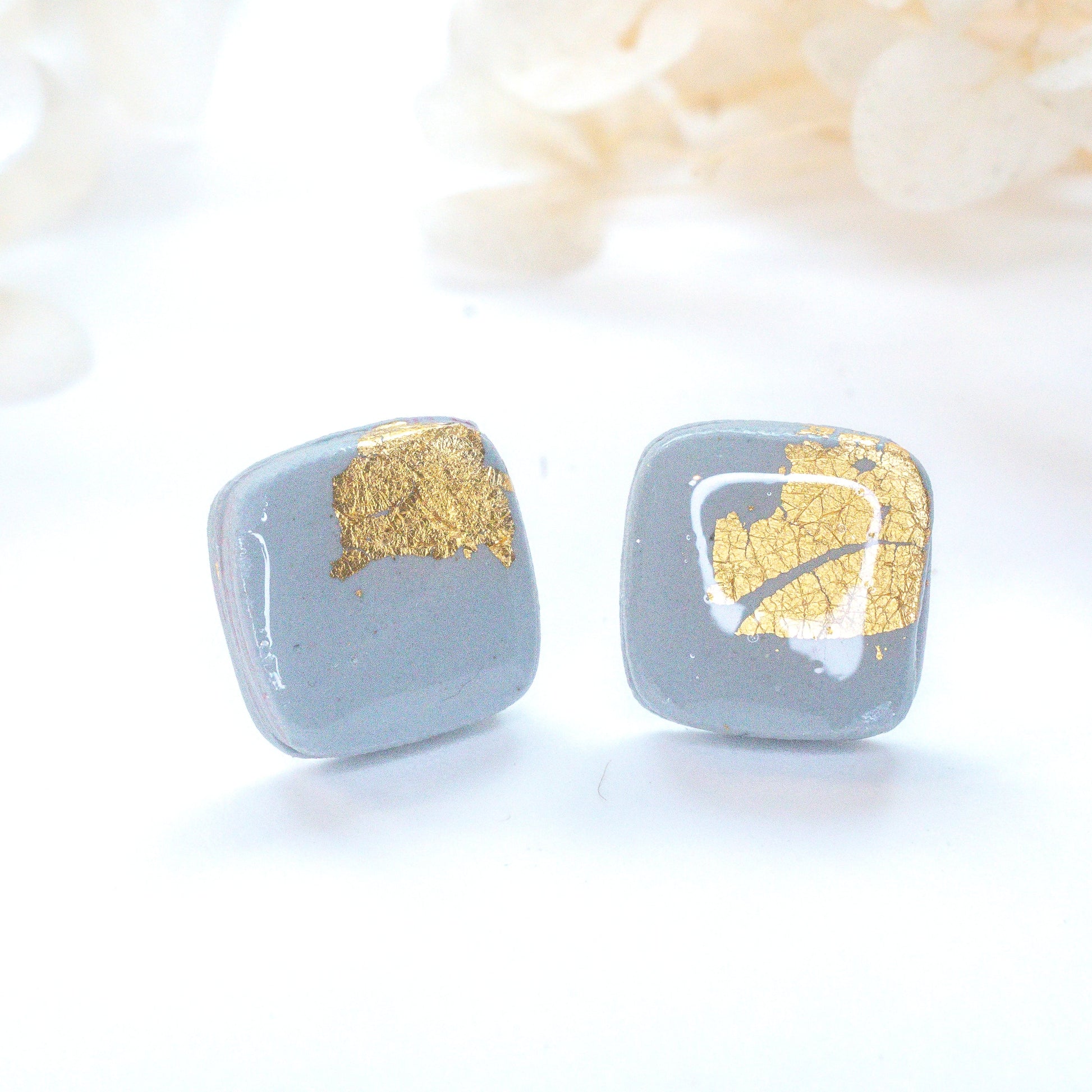 Modern and refined, these slate gray studs are accented with gold foil and a glossy finish—perfect for effortless everyday elegance.
