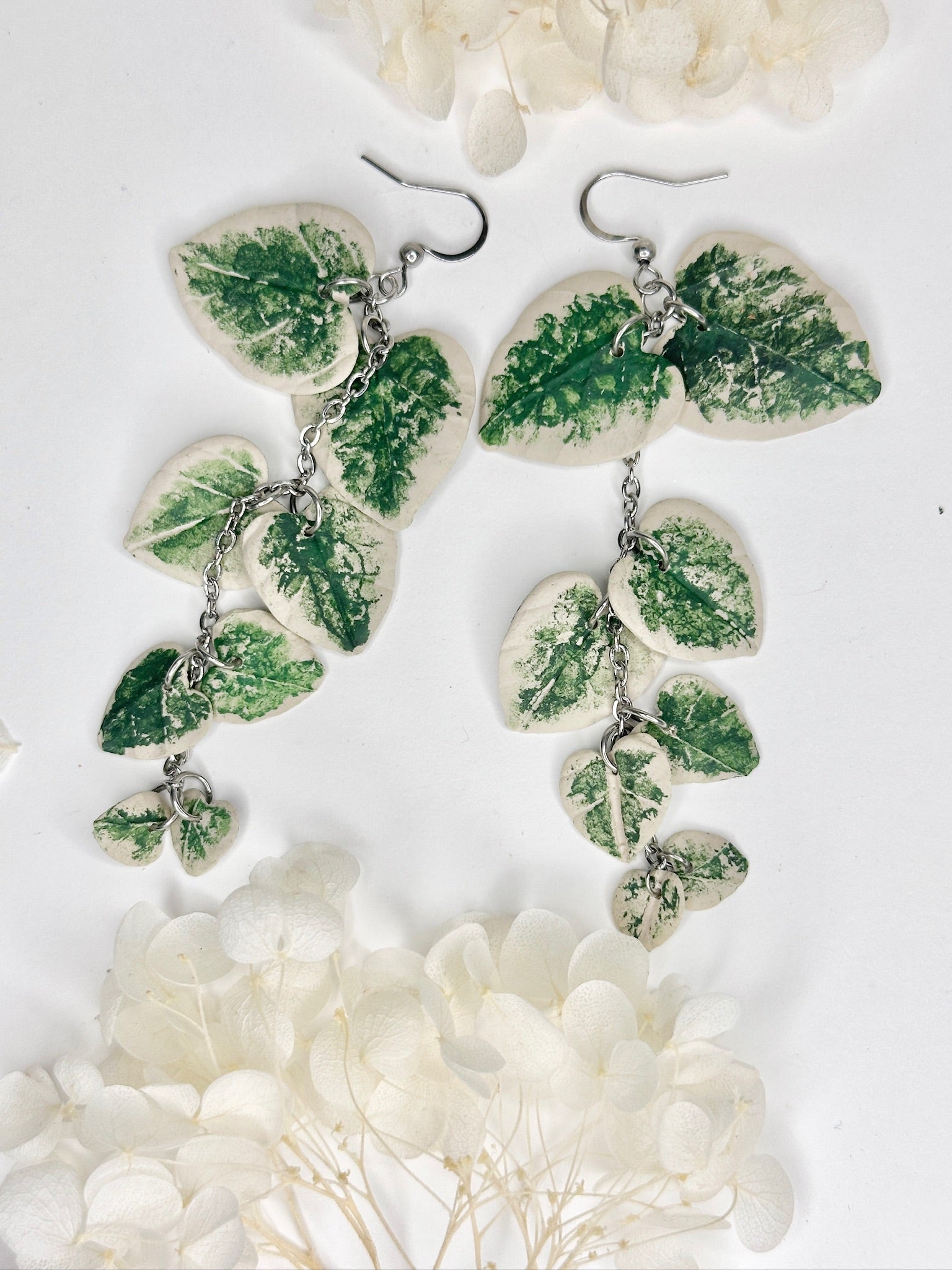 Delicate and full of movement—these String of Hearts earrings capture the trailing beauty of this beloved plant. Each leaf is hand-sculpted and painted to mirror the soft variegation of the real foliage, making them a graceful statement piece for plant lovers and art enthusiasts alike.