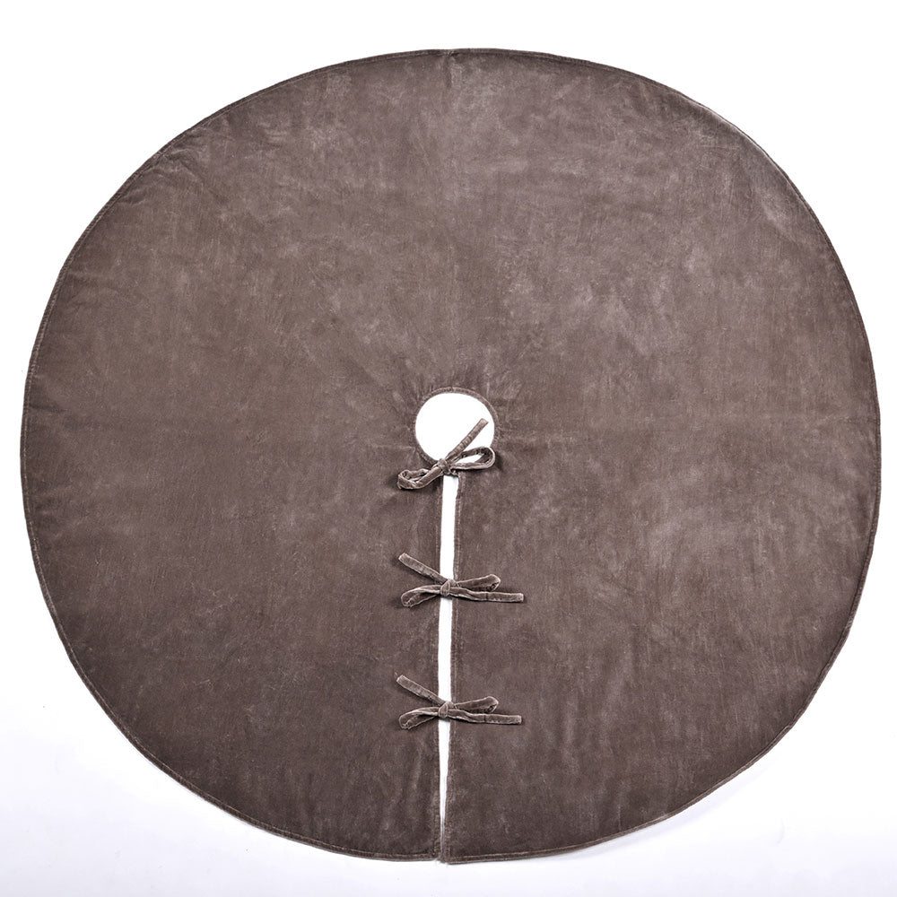 Elevate your holiday decor with our handcrafted velvet tree skirt featuring a felt backing, made in India. This exquisite tree skirt, in a rich espresso color, measures 60" in diameter, providing an elegant and luxurious base for your Christmas tree. The combination of soft velvet and durable felt backing offers a perfect blend of style and functionality, ensuring that your tree looks beautifully finished and is protected from any falling needles or debris. Handcrafted by skilled artisans, this tree skirt showcases exceptional quality and attention to detail, making it a timeless addition to your holiday decorations. Add a touch of sophistication and warmth to your festive celebrations with this stunning velvet tree skirt.