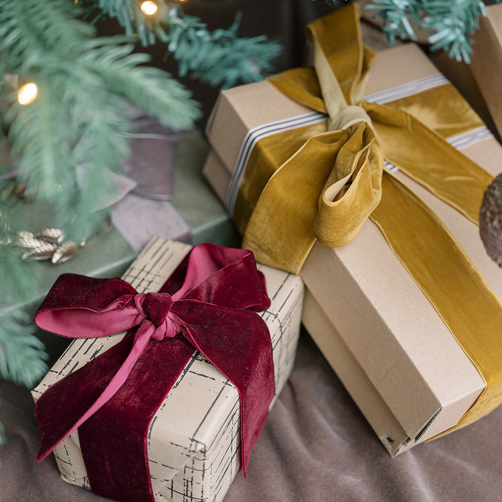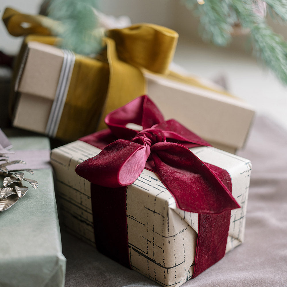 Our wide velvet ribbon is perfect for holiday gift wrapping and decor. Use our velvet ribbon in burgundy for everything from DIY projects to holiday decor to everyday gift wrapping.