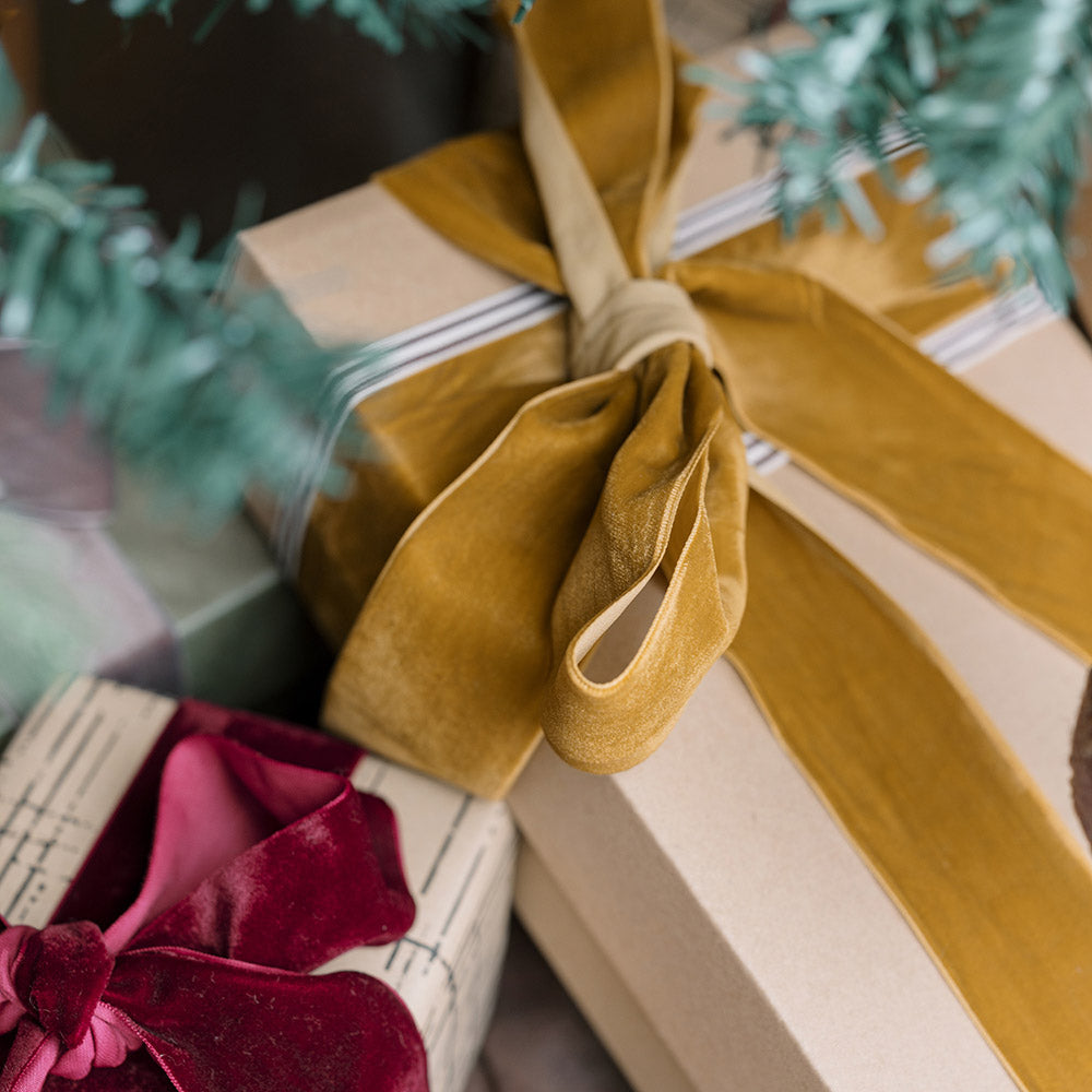 Our wide velvet ribbon is perfect for holiday gift wrapping and decor. Rich in texture and elegance, this ribbon is perfect for gift wrapping, holiday decorations, and DIY projects. Its plush velvet finish provides a sophisticated look, making every detail stand out beautifully.